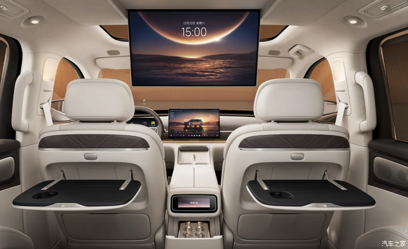 后备箱和前备舱,官方没给太多细节,但从谍照来看,常规状态下,放两个20寸登机箱+婴儿车应该没问题,过年回家装年货、平时带孩子出门,完全够用,放倒第三排,空间应该会很大,露营装备、大件物品都能装下。前备舱看着不算特别大,但能放一些零散的东西,比如充电器、雨伞,还有220V电源,露营的时候能应急,这个设计还是挺贴心的。