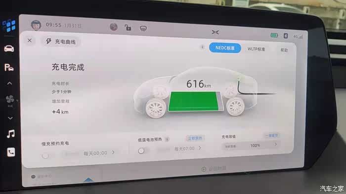 这次行程有一个意外的插曲,本来是准备在快充站补满电出发,结果我去的这个小鹏的免费超充站,因为特来电的原因这里只能让充90%,到90%就会自动断电!我反复试了很多次都不行。于是我刻意打了客服电话,以为是车不能充满电,结果是特来电限制。因为马上就要出发我也懒得换个充电站再充了,于是回家接上老婆孩子,就是这个电量出发了,出发应该是90%多点的电量,显示NEDC616KM。