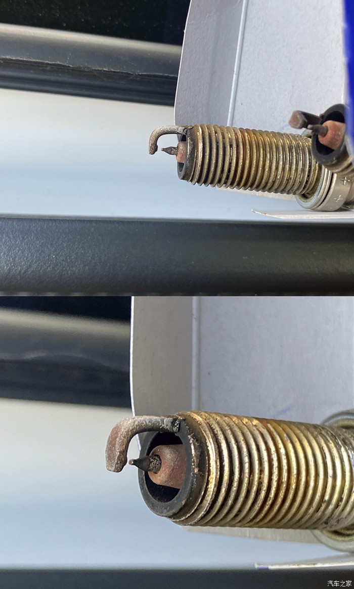 取回旧件看了下,点火线圈那里有点黑,但还没到不堪入目的地步,直接换掉也是图个省心。随着发动机的运行或汽车行驶距离的增加,火花塞电极间隙所必须的放电电压也在不断地上升,会越来越接近点火线圈所提供的电压极限,于是点火越来越困难,并最终发生了断火。火花塞的使用寿命也就终结于此。