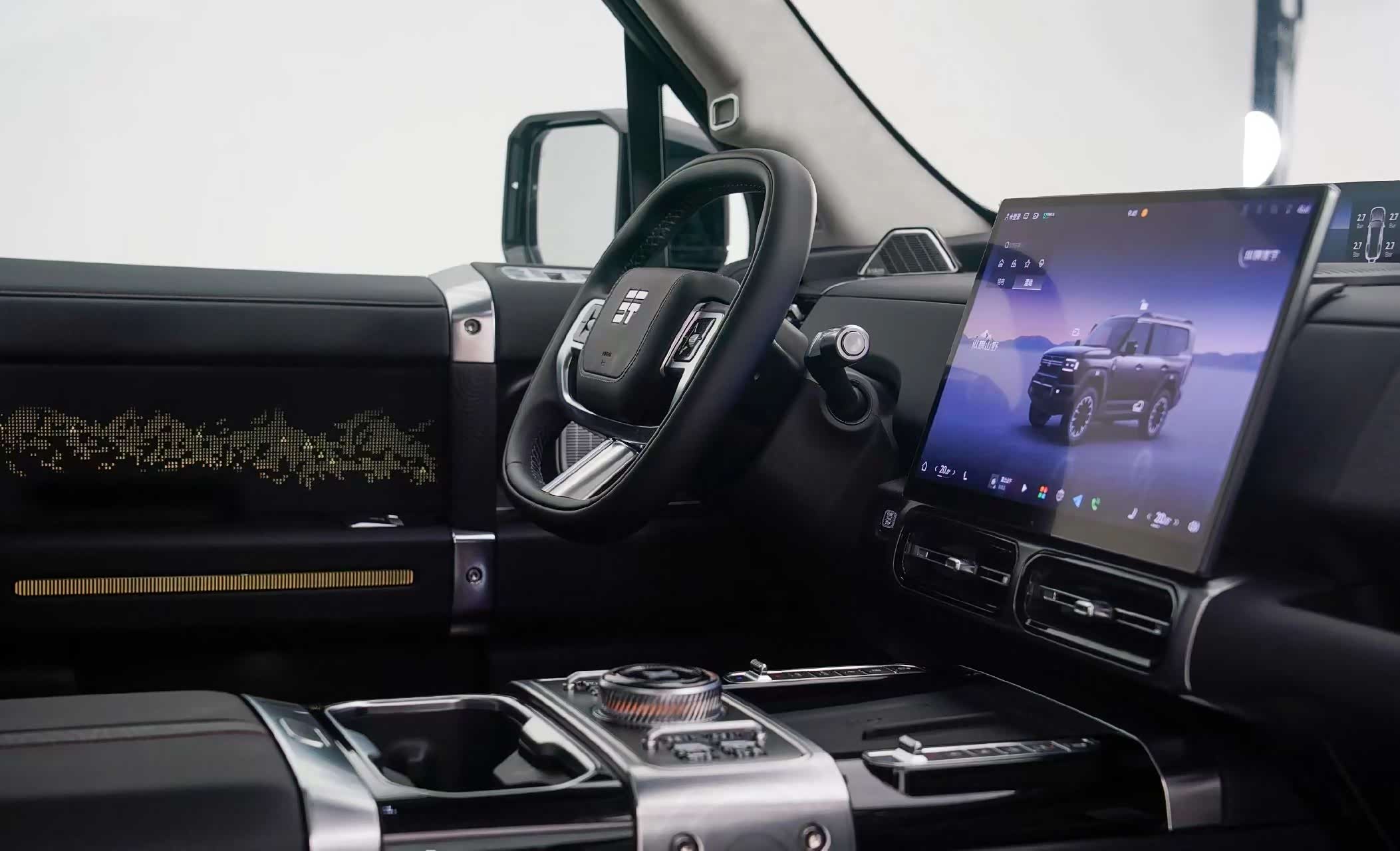该车采用非承载式车身,搭载2.0T混动专用发动机,配合2挡P4电机,可输出560千瓦最大功率及795牛·米综合扭矩 ,动力强劲,0-100公里/小时加速时间仅为4.6秒,带来激情澎湃的驾驶体验。同时,综合续航里程可达1400公里,有效解决续航焦虑。还配备空气悬架和CDC可调阻尼减振器,可根据路况实时调整悬架硬度,提升驾驶舒适性和通过性。