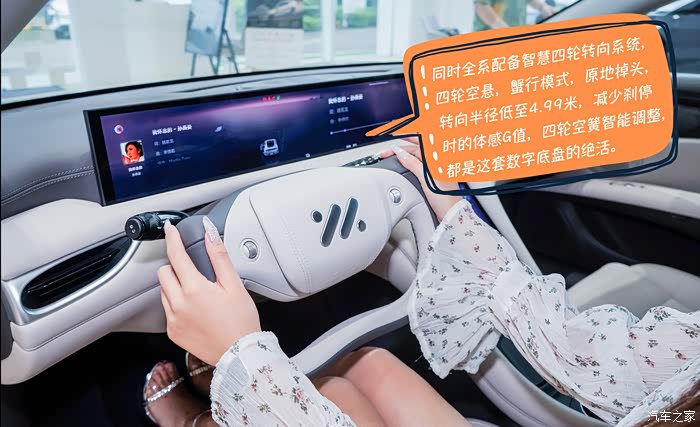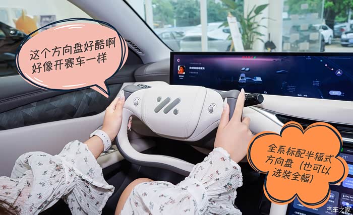 贝壳担心这个方向盘不好用,其实当你习惯这个方向盘之后,你会发现另一个新世界,因为智己L6全系配备智慧四轮转向系统,转向半径低至4.99米,用这个方向盘转向毫不费力,还不会挡住前方显示屏的信息。