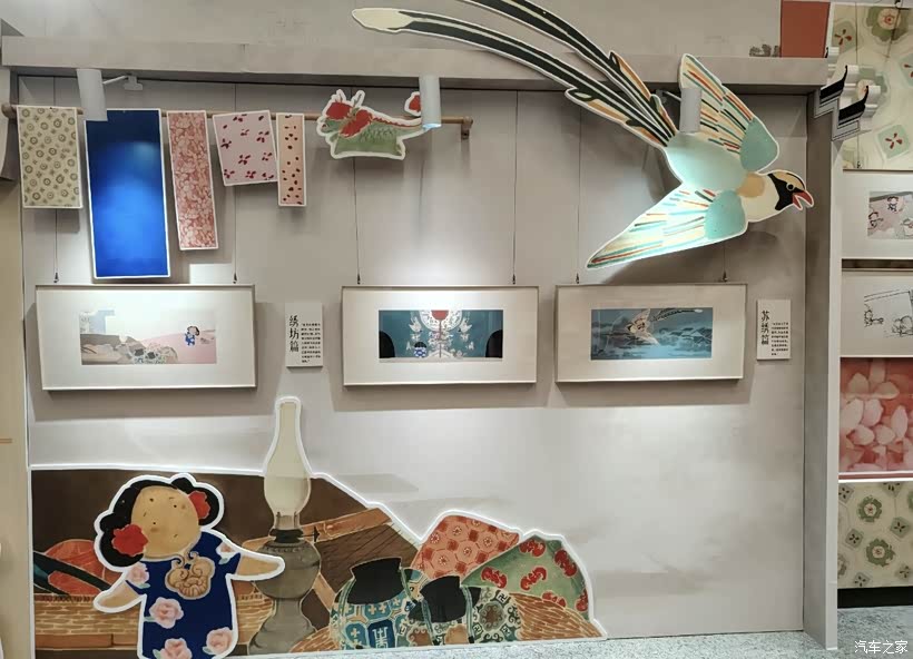 孩子对书画展厅的民俗画作很感兴趣,色彩鲜艳,内容生动,还能通过互动装置了解画作背后的故事。