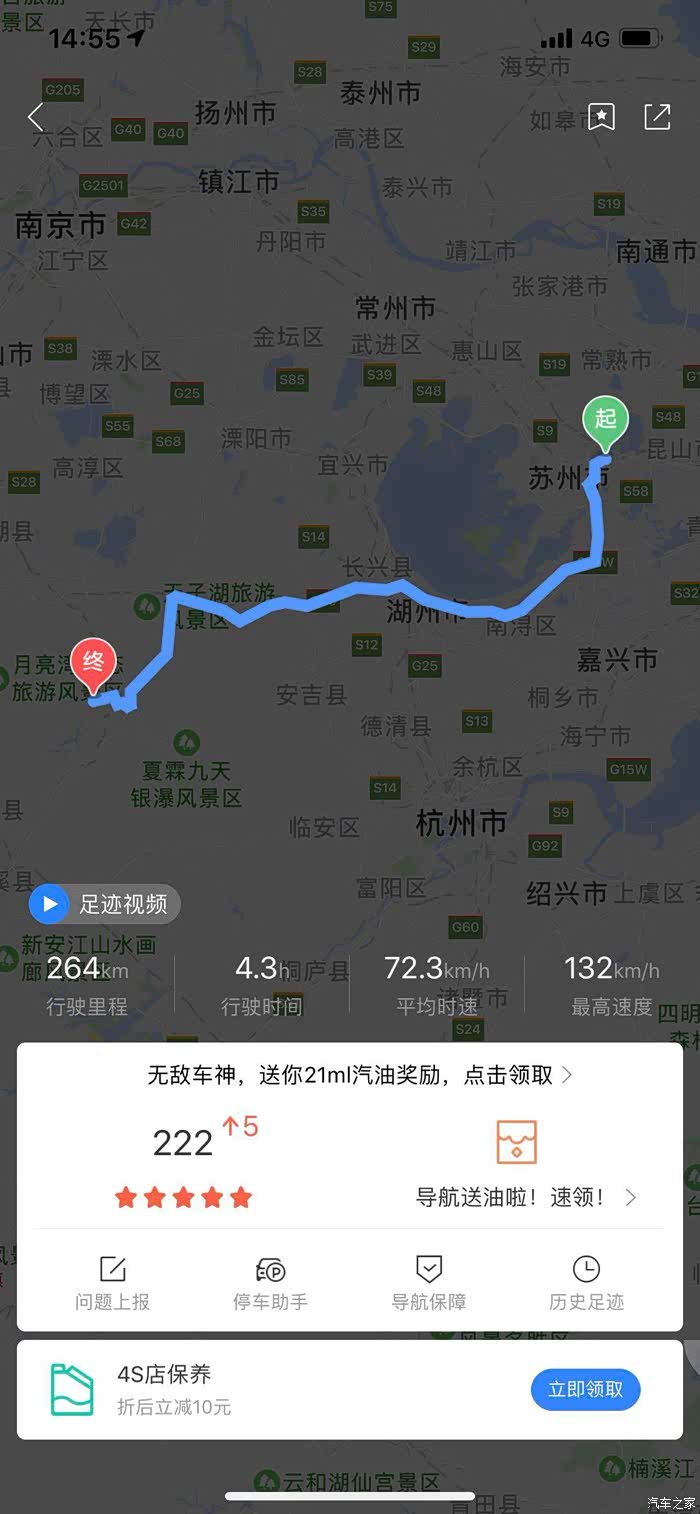 全程走走停停,从苏州开到宁国,264公里足足开了4.3个小时,可谓是将自由进行到底了。