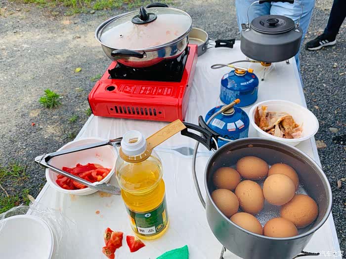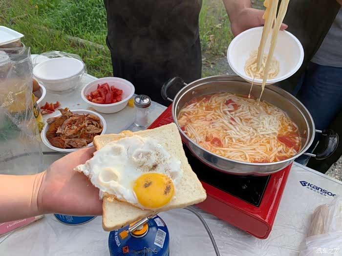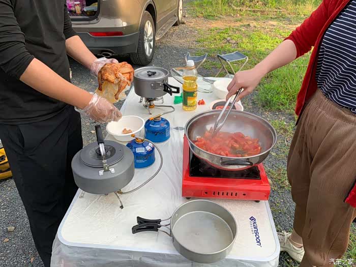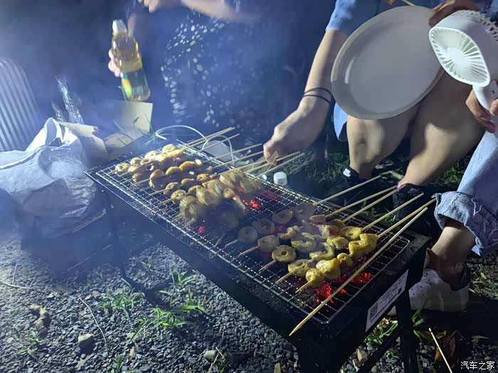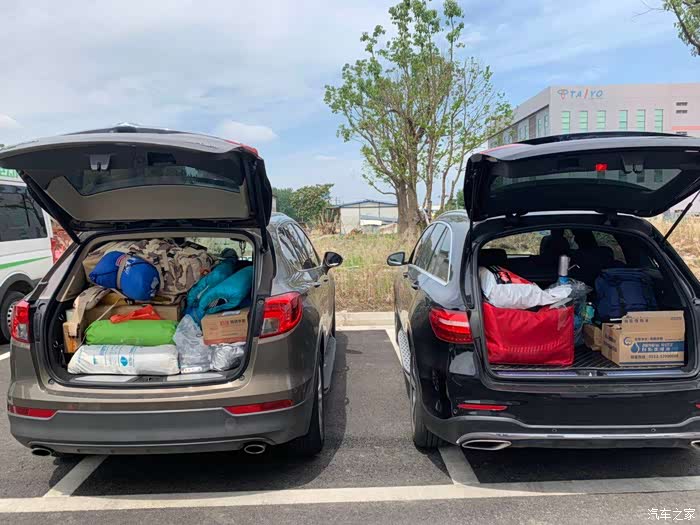 既然是自驾游,所以要将自由进行到底,在出发前就决定,晚上以烧烤露营的形式度过,让小朋友体验下原汁原味的山里生活,瞧这两个满满的后备箱,但这只是冰山一角,还有三辆车也装满了后备箱。