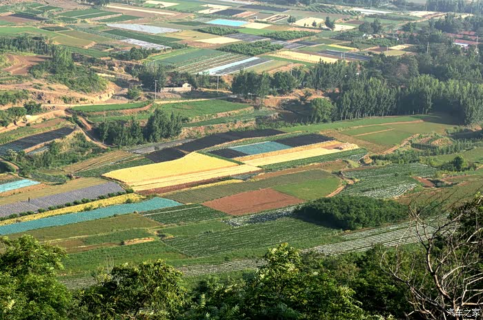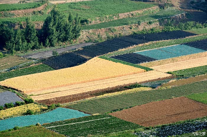 特别是小麦和谷子成熟的季节,各种颜色交错其中,像一条条多彩的绸缎,尤其小麦的金黄灿灿,谷子的红红火火,最为壮观