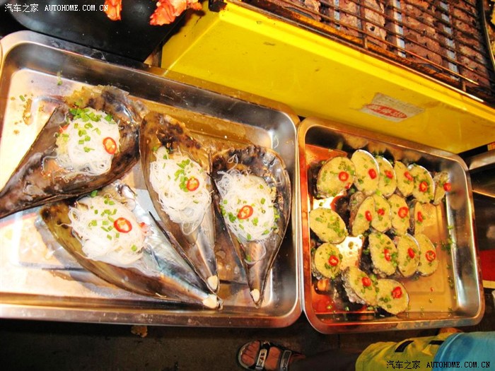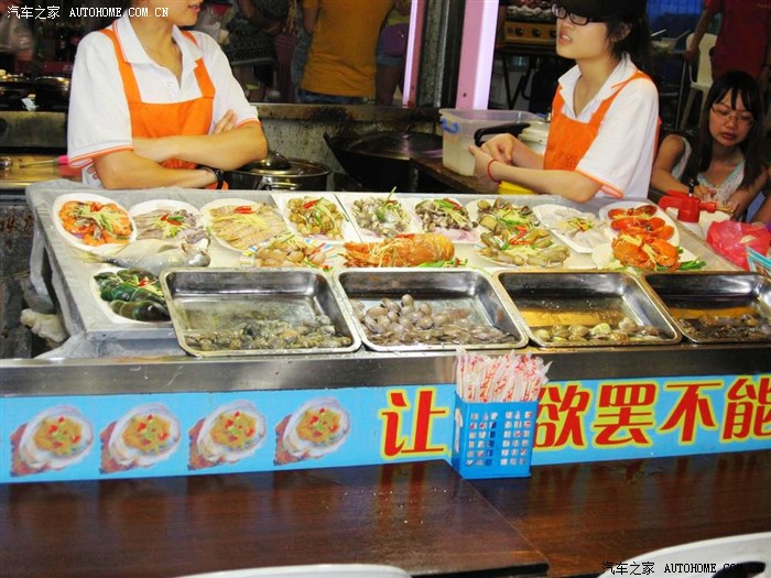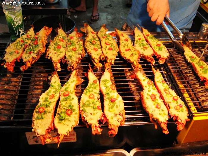 夜市上各种海鲜争奇斗艳,各种小吃和各色鲜榨果汁让人眼花缭乱。还有大龙虾,剖开后铺上一层大蒜子点缀着红辣椒烤着吃,那叫一个垂涎欲滴啊!真真是吃货的天堂!