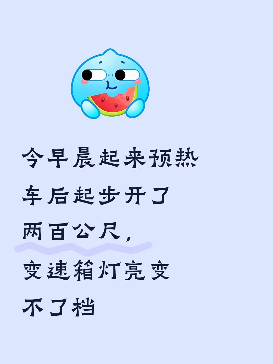 今早晨起来预热车后起步开了两百公尺,变速箱灯亮变不了档
