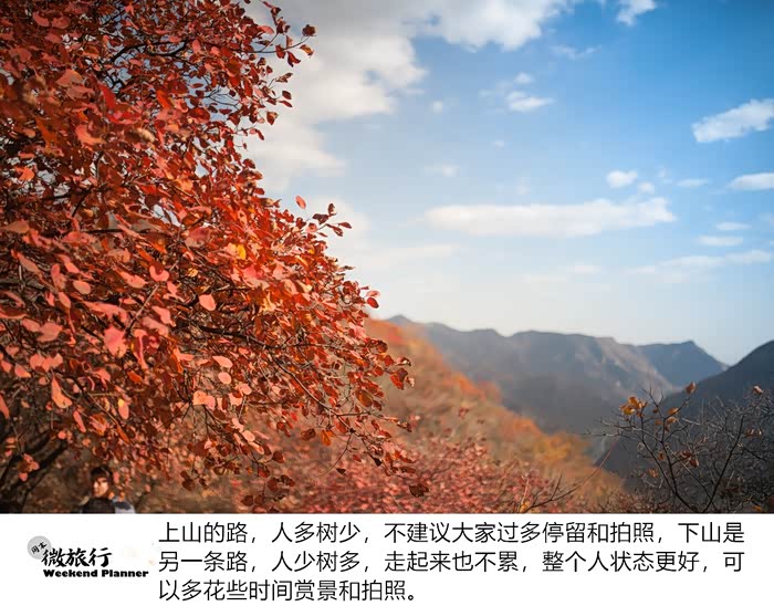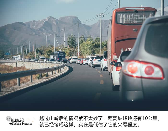 ①现在正是看红叶的超级旺季,周末过去一定要赶早,人非常多。去晚了不能停车在景区门口,需要做摆渡车。
