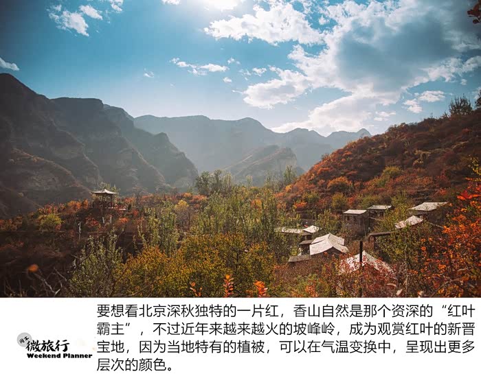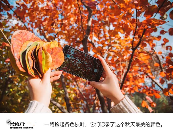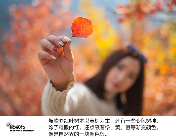 ③坡峰岭的红叶以黄栌为主,山上红叶景观颜色成渐变色,非常好看,拍照很漂亮。