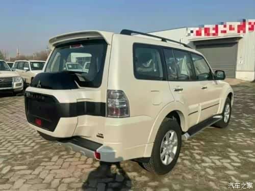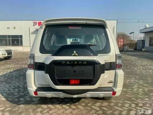 尾部造型方面,采用了背负式备胎设计,备胎罩为黑白双拼设计,整体与车身颜色相融合,上方有黄色三菱车标,下方为帕杰罗英文标识,车顶带有大尺寸扰流板,底部带有银色导流槽设计,而且带有黑色拖车勾,实用性很高。