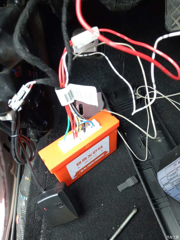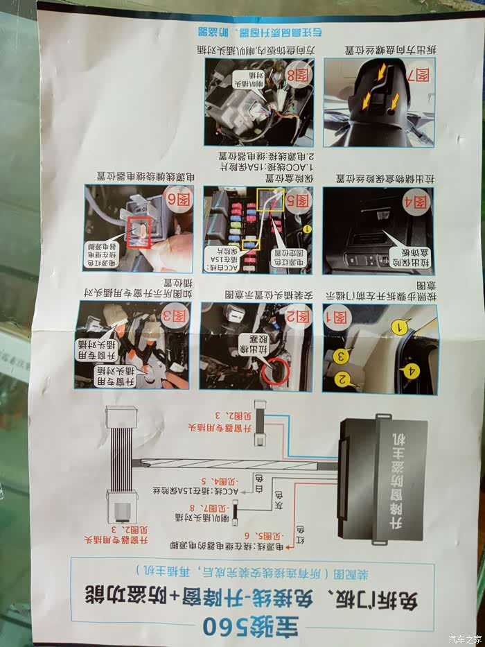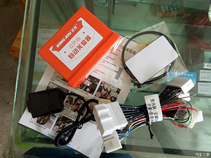于是加装一键升窗器的念头一直在脑海里面萦绕。之前有车友去汽配城装过用不了,高配车装上通电就会烧保险。所以一直煎熬着,直到前阵子在网上发现有高配车能用的免拆门版一键升窗器,并跟卖家一再确认高配车能正常使用不会烧保险才招呼几个车友一起团购了。下面进入图文模式