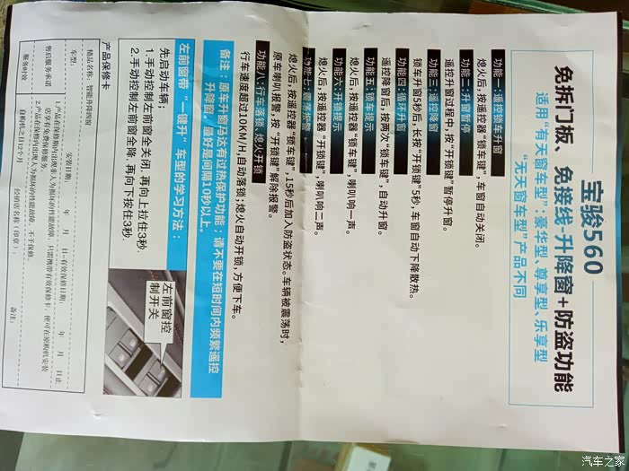 宝骏560原车带有一键降4窗功能(长按开锁键三秒),在大太阳天气下面晒久了开窗散热,或者上车前开窗透下气都是很方便的