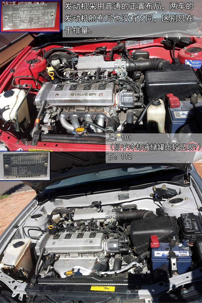 两车的尾部都有注明“SECA”,与其他地区的Corolla有所区别。101配备的是1.6升四缸发动机,而112配备的是1.8升的发动机。当然其实101也有1.8升的版本同时112也有1.6升的版本。