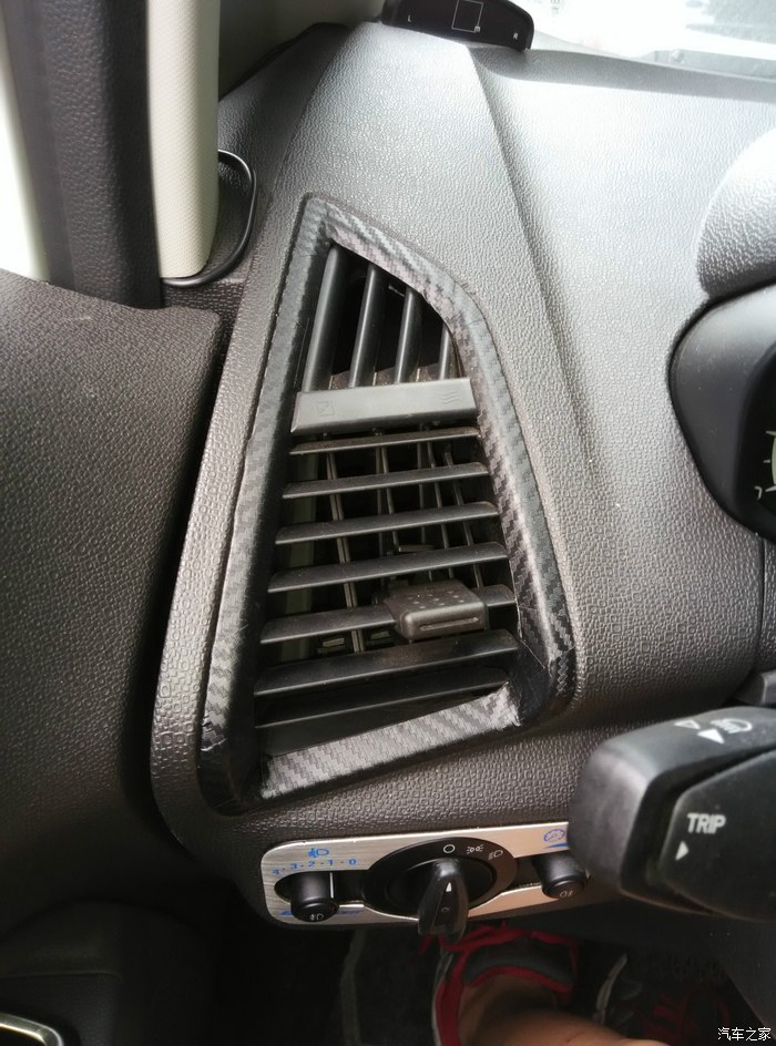 出风口碳纤贴纸,可能后期的车都已经改良了。反光确实有点不适应,自己拆了下来慢慢贴,远观还行,近看就那样吧!现在TB也有现成的贴卖,总之不反光就行了
