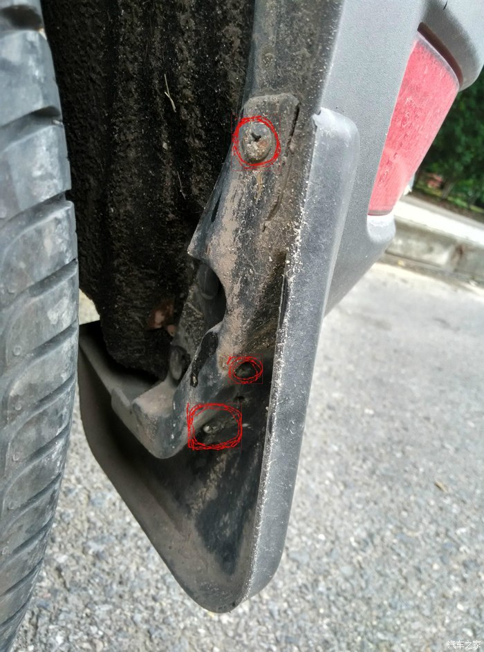 虽然原车上有塑料螺丝安装挡泥板,但是后来在雨季行驶中雨水对它的无情冲击使它松动及各接缝处不严实。想想还是另外再用黑色自攻螺丝在侧面的塑料壳上加固,这样就完美多了,再喷上黑色喷漆加上泥土遮挡,看不到的。图个心里踏实,省的掉了一个还得买4个,因为我就掉了一次后才会想到这一招的
