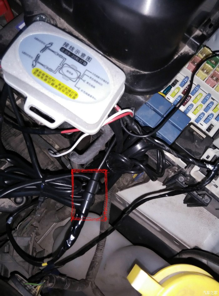 因本人嫌控制线进入副驾驶室麻烦,就近在发动机舱的保险盒内取电了。在此还得感谢本改装群的666号珠海的群友