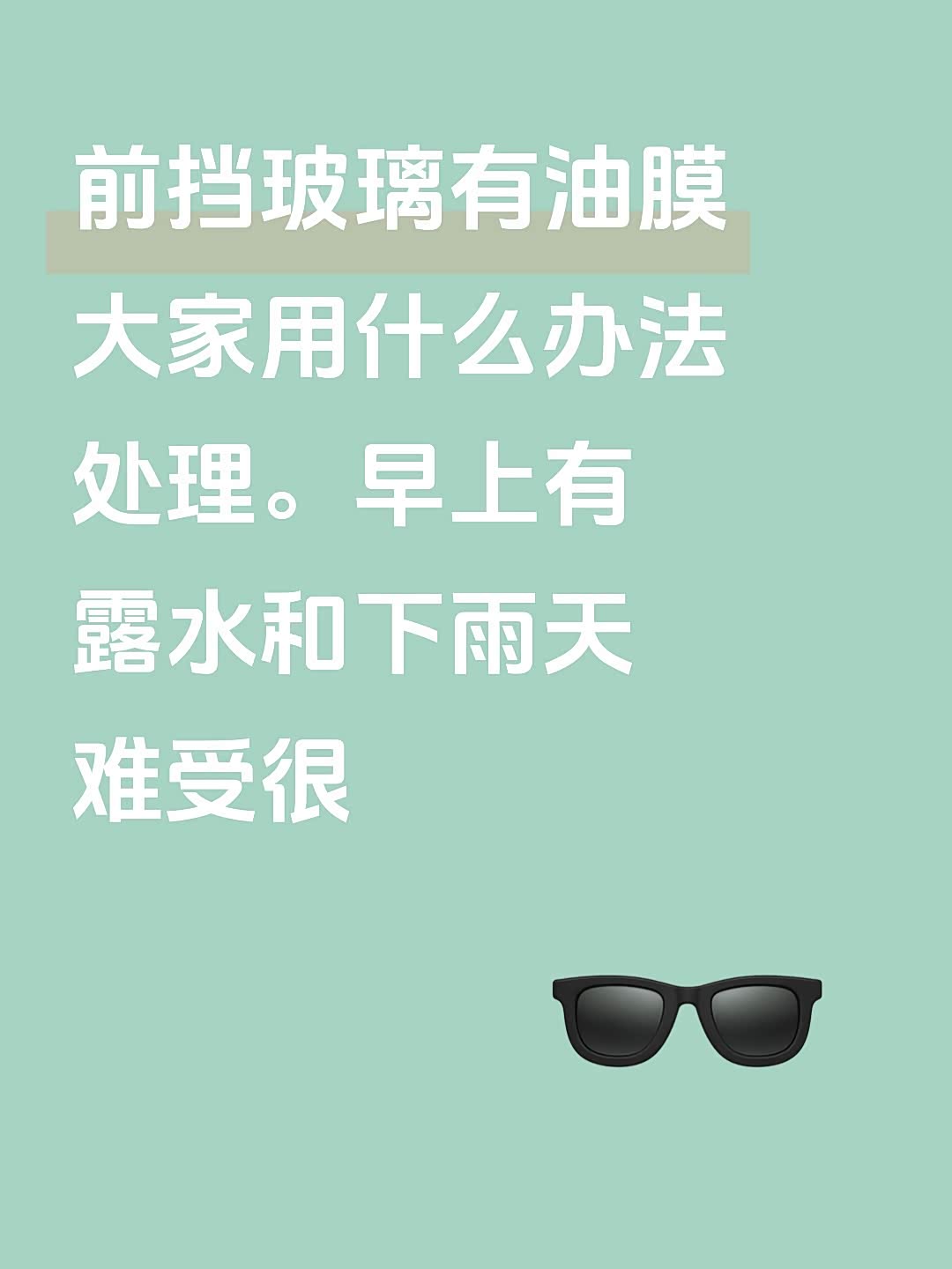 前挡玻璃有油膜大家用什么办法处理。早上有露水和下雨天难受很
