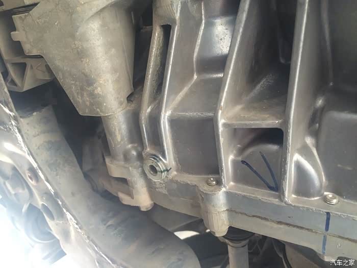 拆掉发动机下面的护板,露出了干净的发动机,莫有漏。把螺丝标好记号,一会还回去的时候才知道位置