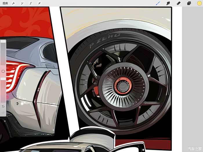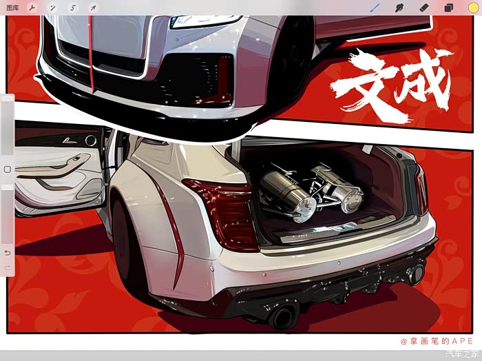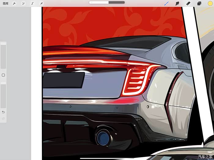 车尾灯绘制完成,接下来就是一步步的上色,细节的绘制了。