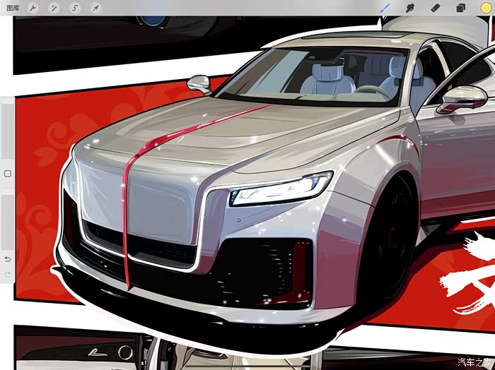 今天画一张关注了很久 而且非常喜欢的车 红旗h9,爆改,由溜溜哥打造的
