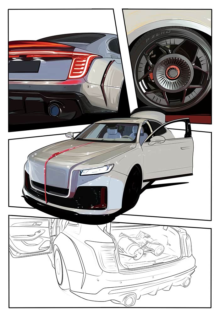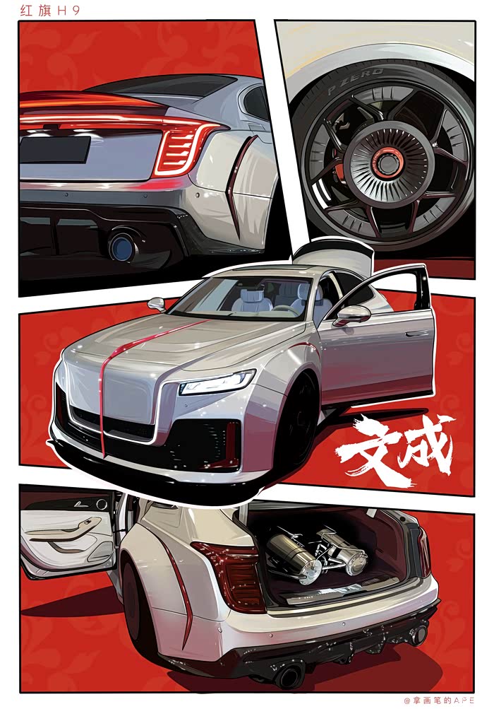 【汽车手绘】红旗H9 文成 亮相2023大阪改装车展