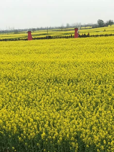 阳光下,油菜花是奔放的。南风吹过,涌起一股又一股金色的波浪,在阳光的照耀下闪过来一波又一波亮光。