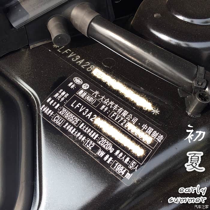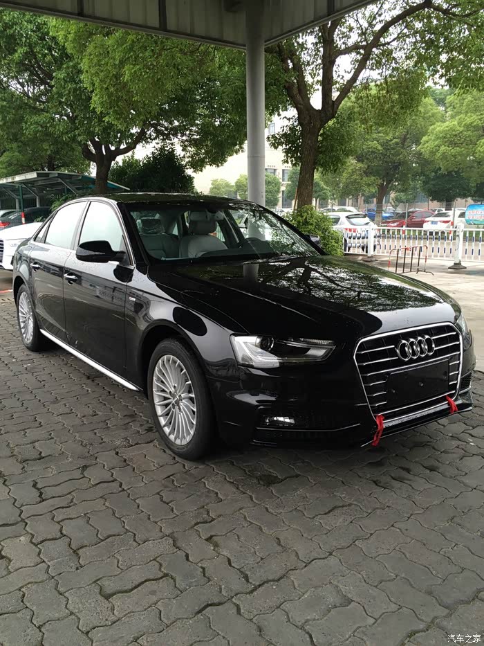 这一家谈起来就快多了,虽然价格也比我的目标高了,但是销售也够给力,偷偷带我去了车库,各型各色停的满满当当,因为第一个车是白色,就不想再要白色了,销售说我运气好,刚好有一台黑色舒适,出厂日期5/25,4S入库日期6/9,车架号也很喜欢,6/12我就锁定了这辆,各方面比较满意,当场刷卡定金1万。销售也说黑色就是大气,不了解的人一看车头会认为是A6,事实也是后来遇到朋友问我买了A6了?我笑笑。