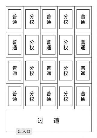 如图4图5,第一张图是现有的停车场或车库的示意图,由于要给出入库的汽车留出过道,所以停车位就会划分的比较少,但是这些空出的过道却可以停放分权式汽车,如第二张图。如果停在停车位的普通汽车需要开出车库的话,只需要依次把占在过道上的分权式汽车挪至别的空的过道上即可,或者暂时挪至车库外面,这样的话普通的汽车就可以顺利的从过道开出车库或停车场。这样就等于“凭空”增加了车位。