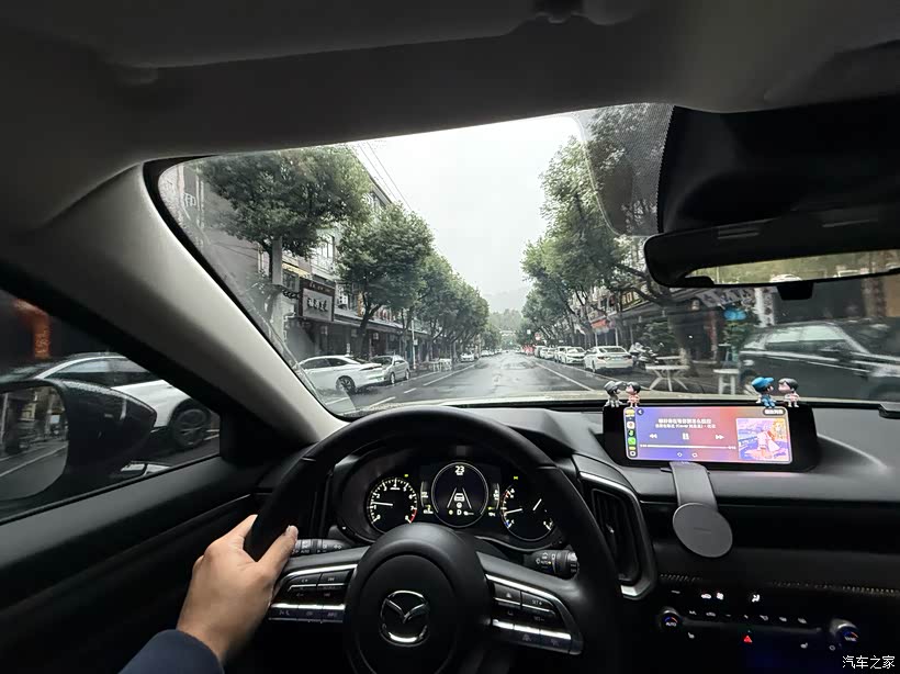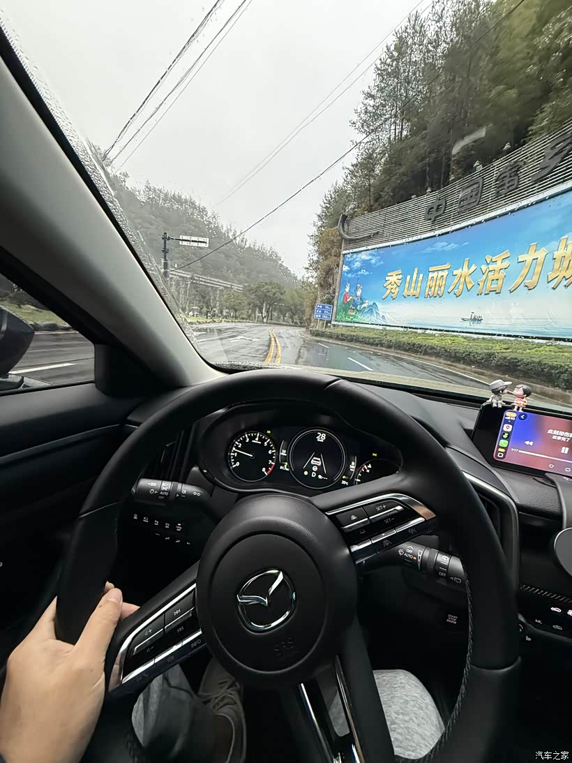 低速开的时候,方向盘又轻又准,单手打方向都轻松,基本没啥虚位,指哪打哪,开着特踏实。窄路掉头、急拐弯的时候,转弯半径不大,挺好操作的。过弯时虽然是扭力梁悬挂,但撑得住车身,侧倾不明显,车头反应快,车尾也能跟上,过弯特别顺。走高速匝道时,45到50码过弯,车身也稳当,不怎么晃。在城里堵车的时候,方向盘轻得很,在车流里钻来钻去、变道跟车都轻松,方向盘给的反馈也刚好,开久了也不累。跑山路弯道更舒服,入弯前轻踩脚刹车,车身稳得很,快出弯时深踩油门,车身不晃,车尾也跟得紧,侧倾控制得不错,这时候发动机“ZooZ ZooZ”的声儿听着都爽,这就是马自达“人车合一”的乐趣。要是切手动模式降挡,动力给得更及时,过弯也更顺,不过毕竟是SUV重心高,还是慢点开弯安全。速度快起来的时候,方向盘会变沉,高速开着更稳。高速上用ACC和车道居中也挺方便,按方向盘右边按键就能设跟车距离和速度,前车减速或者加塞,系统刹车反应挺快;但前面没车的时候,系统突然提速有点猛,体验不太好,后来听车友说把挡位切手动就不突兀了,不过电子产品总有 bug,车多路况复杂的时候,还是自己开靠谱。刹车也是马自达的味儿,刚踩下去那点劲儿特别柔,几乎没啥减速感。刚提车那阵在城里跟车,总觉得刹不住,好几次得补一脚刹车,对刹车距离没底,只能更早预判前车。但踩深点制动力就上来了,而且给得很线性,习惯之后不管是慢慢减速还是急刹,都能控制得特别好,就是得适应适应这脾气。