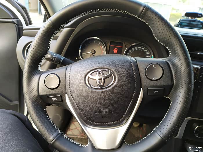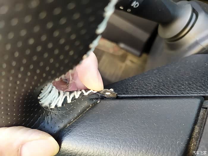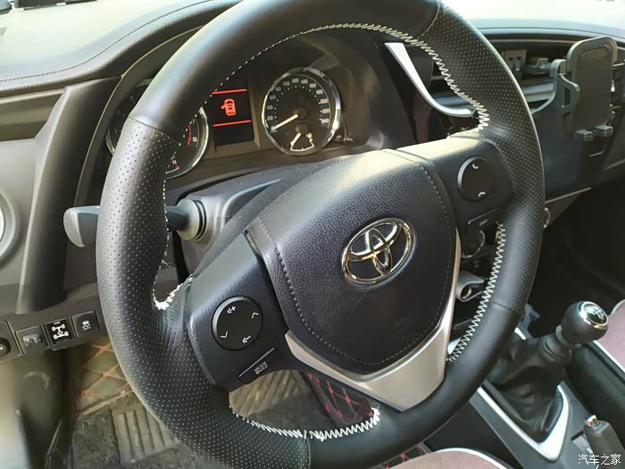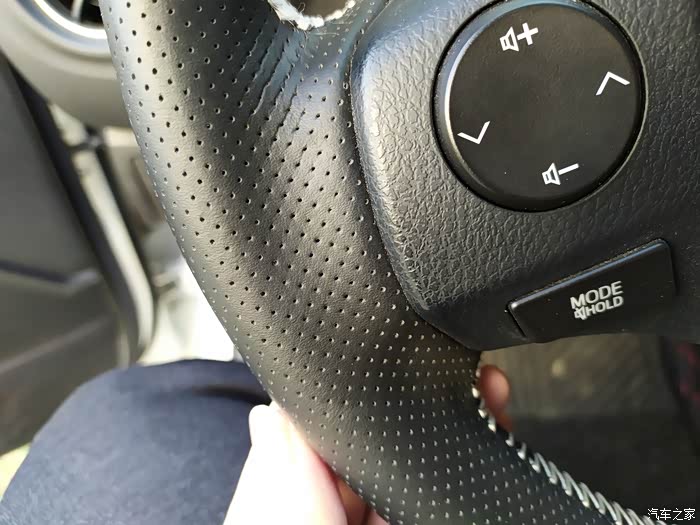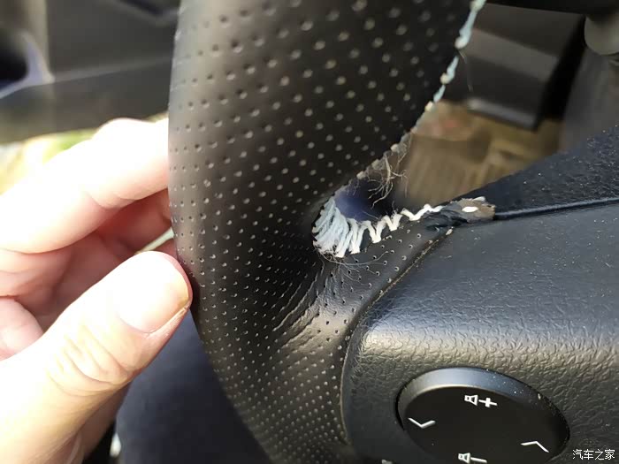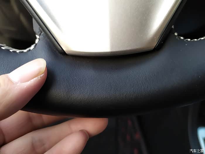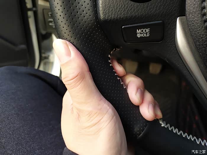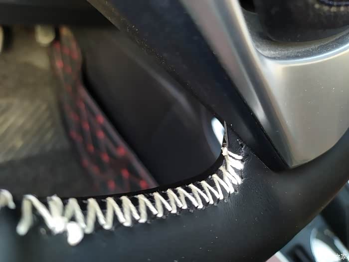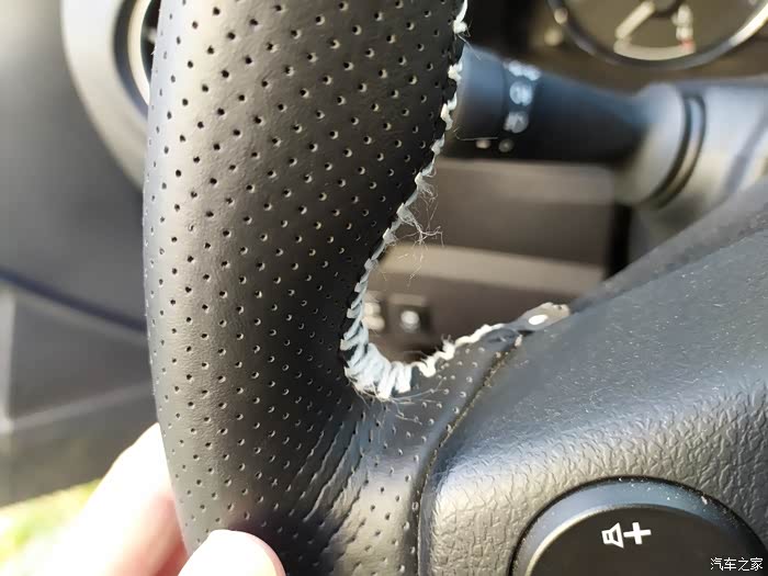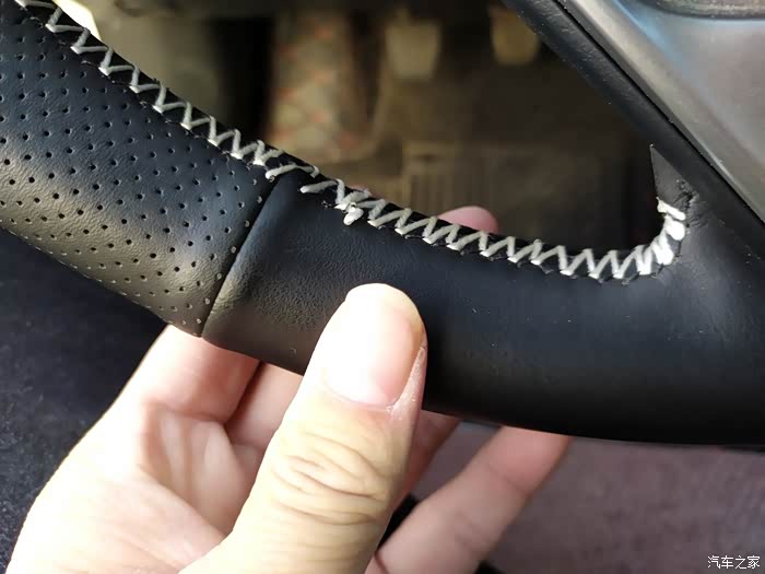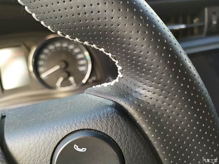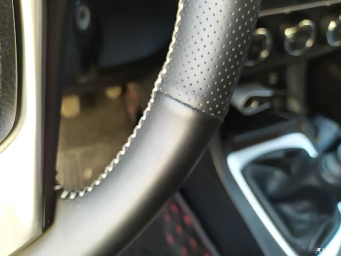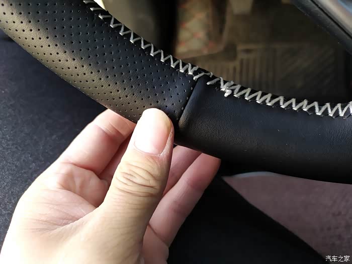这真皮方向盘套呢,也是我亲自花了大半天的时间缝上去的,第一次缝偏了,紧接着搞了第二次,看上去效果还不错,关键是手感好啊,记得当初新车上手练车时,塑料方向盘把我手上茧子都磨出来了……而且冬天要来了,有了这件装备,也不会有手冷的烦恼。