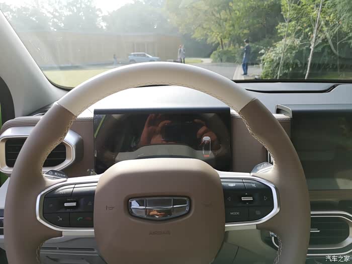 来看看小绿的内饰吧,仪表盘很有特点。前方视野很好。