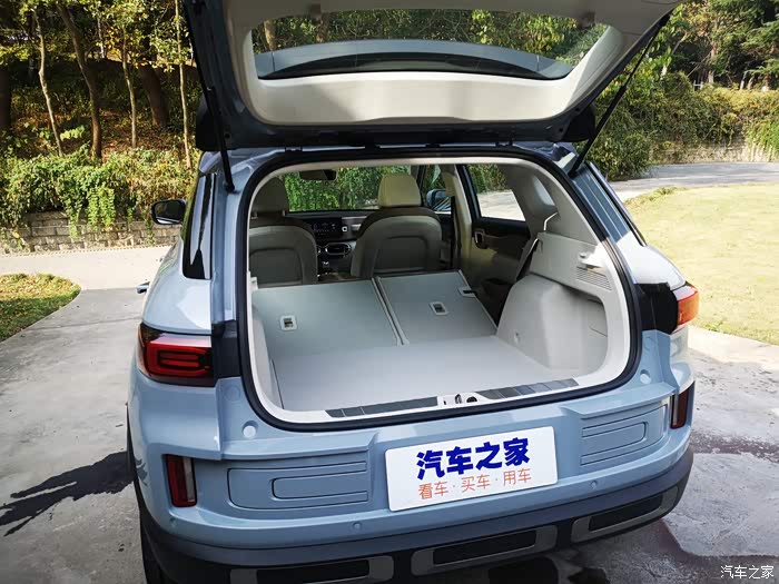 SUV车型就必须要有空间延展性。后排比例放倒,可以来个床?