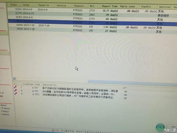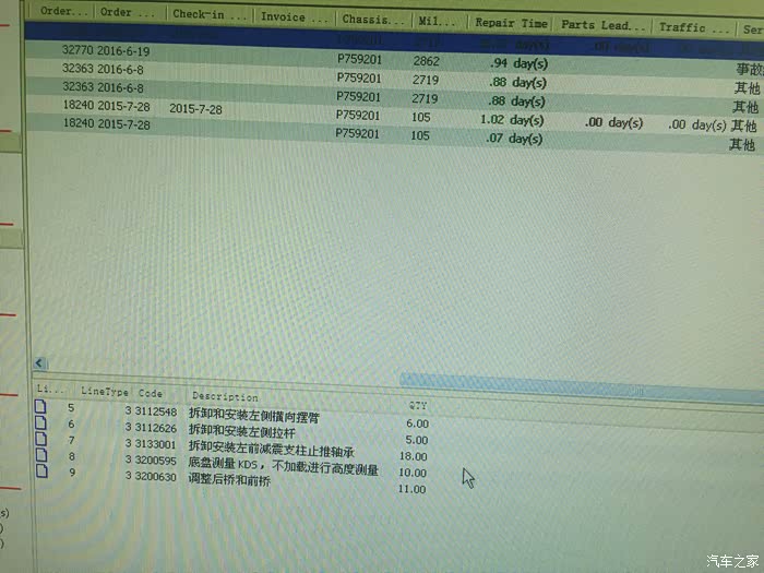 保养记录中,左前悬异响