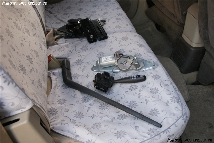 材料准备:需要后雨刷电机(140元),组合开关(80元),后雨刷臂(朋友给的没花钱),线束及插头若干。重点是要搞到胶皮水封,这个是必须要有的,否则千万不要开工。固定电机的螺丝及备用门板卡扣(需要打开尾门板,卡扣可能会损坏)