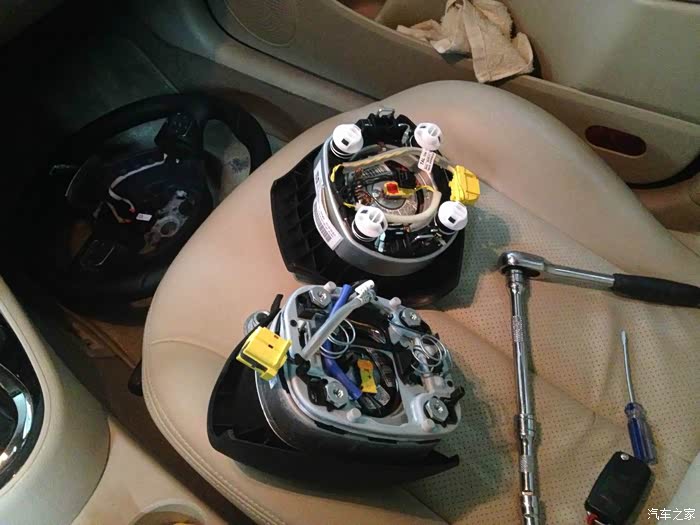 第二,犯懒,为了方便使用,增加了巡航定速,自动大灯,多功能方向盘,反光镜行车记录仪,车载导航。巡航定速,跑高速的必备犯懒功能,安装过程中比较麻烦的是油门控制线需要顺着方向盘连杆捅到发动机舱,因为油门控制电脑在雨刷电机旁边,这个找一个比较硬的钢丝捅了半天才搞定的。自动大灯,和控制器就塞到保险盒里,光电感应器放在能见到阳光的地方即可,没难度。多功能方向盘(因为更换了音响机头RCD510,想实现方向盘操控),这个比较烦,在某宝搞了一个回来,后来发现(好像是高尔夫6的)里面的控制线束当然也不是朗逸的,结果不得不在万能的百度搜来搜去的找连接线序,从新把接头弄出来,端子又卡一遍。按顺序插进去,但行车电脑控制部分的功能无法实现,还是只能用雨刷控制器上的那两个小按钮。但我想,方向盘上还有6个没有定义的按钮,以后还可以研究一下,把一些功能移植过去,比如说手自一体的加减档,呵呵呵呵,YY中。。。反光镜行车记录仪,看过一些碰瓷界影帝级选手的表现,这个必须装,只得一提的是记录仪与反光镜一体,自带测光,夜间防眩光模式,说白了就是个自动变色的反光镜,带有一个隐藏式蓝牙耳机。另外如果在划线道路上行驶,偏离车道,它会报警,奔驰上这个功能是偏离车道,方向盘会震动。车载导航,装在原来储物盒的位置,主要是看导航不用低头了,行车安全性有所提升,另外倒车影像就有了。至于里面的电视、四轮胎压监测功能。。。。虽然不怎么用,但总比没有强。