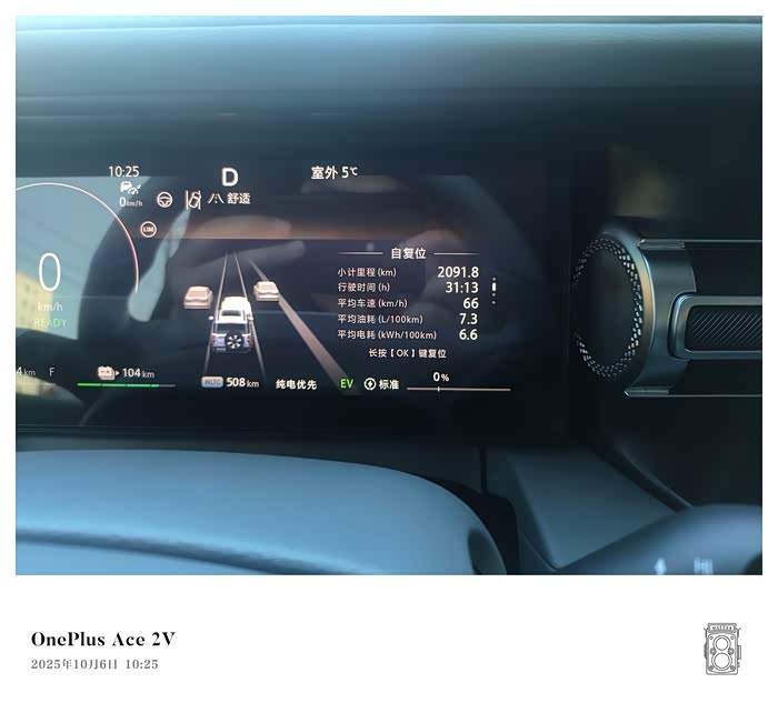 10月3日第一天,从北京朝阳区至河南平顶山,全程830公里,满油+95%电量,开车10个小时及高速服务区休息等,共计耗时12小时。如下为表显数据截图。