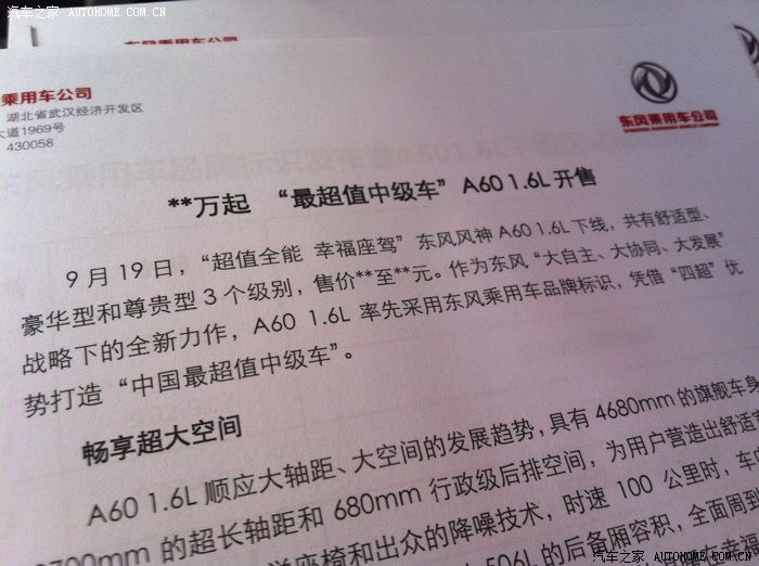 在今年的3月份,东风风神A60 2.0L在北京的国家会议中心上市。点击回顾东风风神2.0L上市直播 而仅过半年的时间,9月19日东风风神又携旗下一款1.6L发动机的新车型与我们见面。