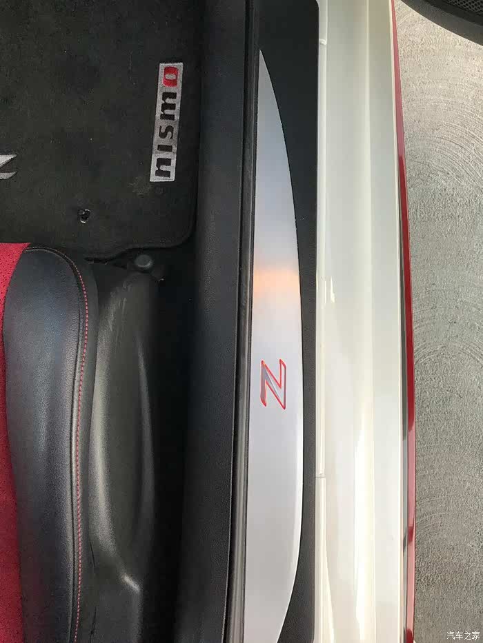 可能是我没洗车的关系 其实nismo的侧裙也是红色的 只是现在看的不是那么的明显 无钥匙进入车门 门把也是延续了Z的一贯风格 纵向的开启方法。