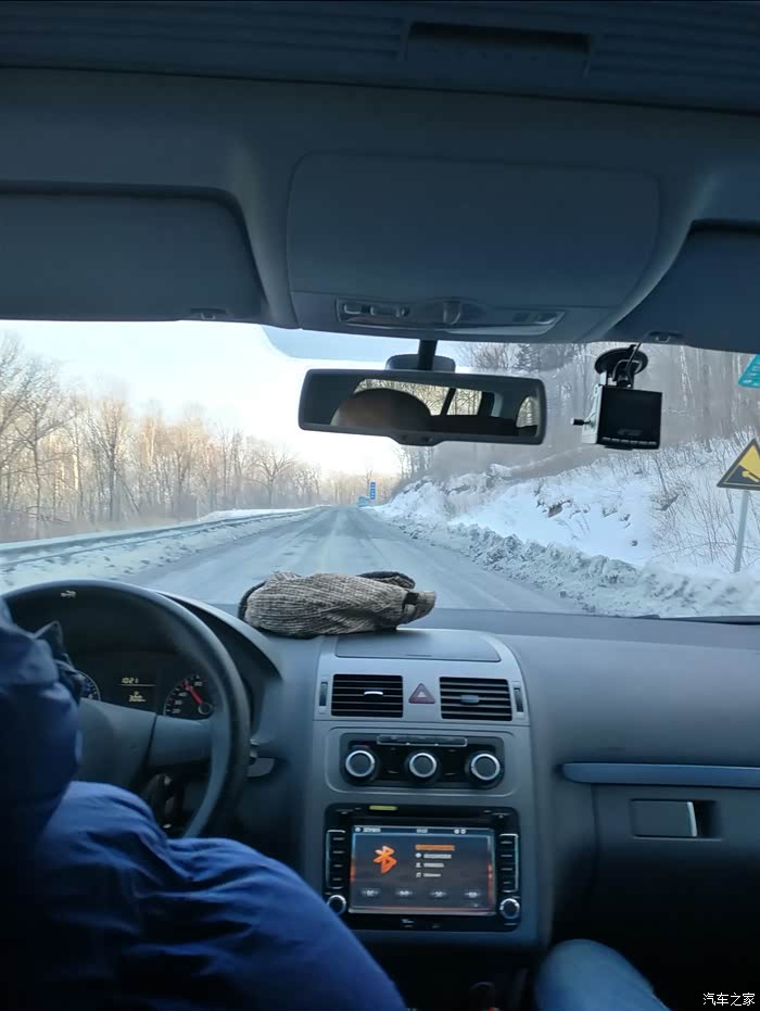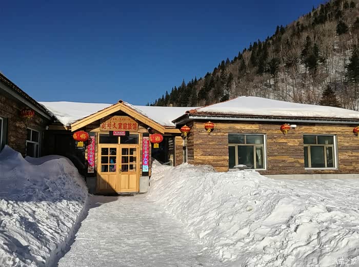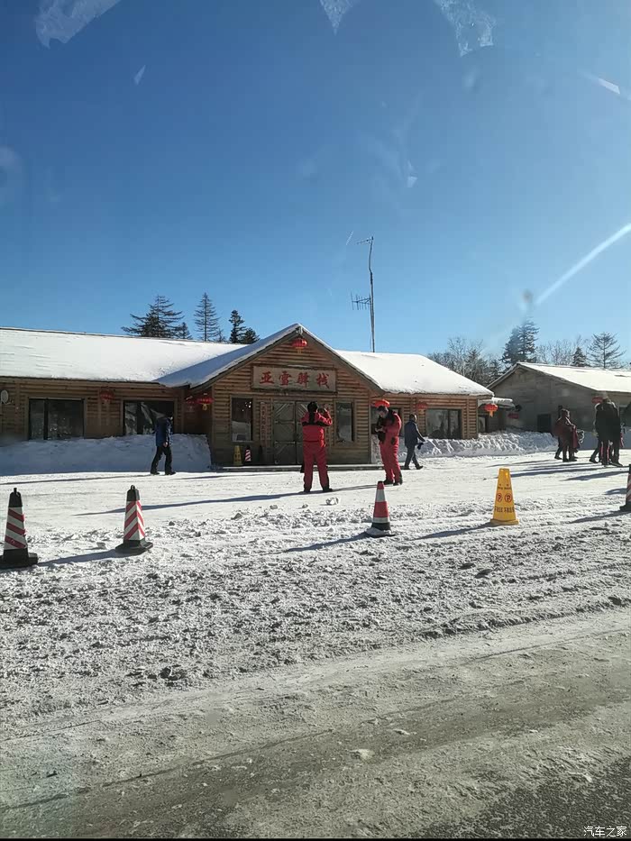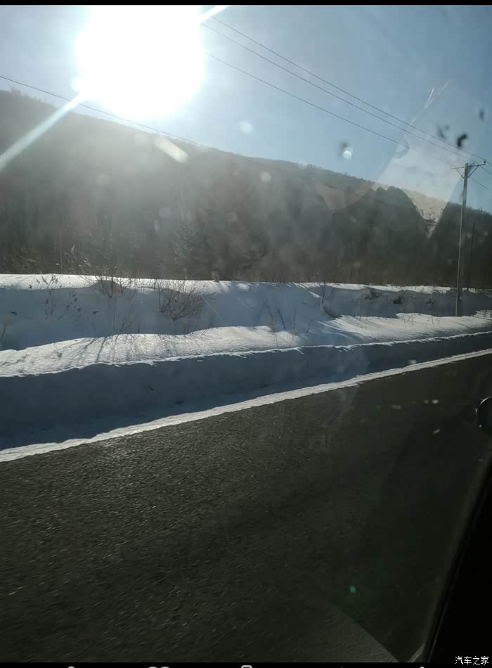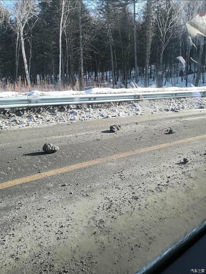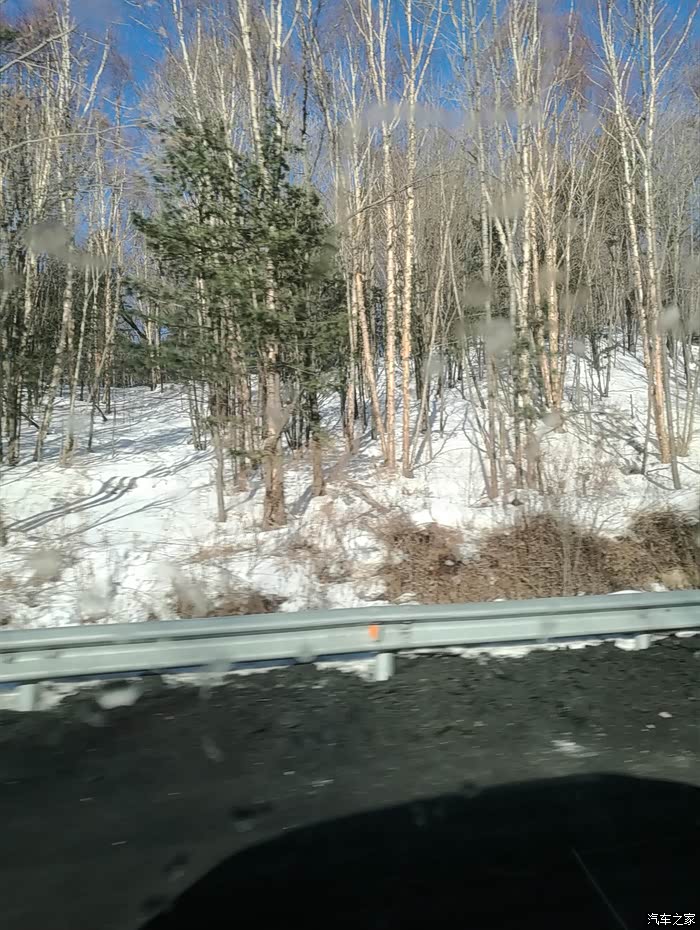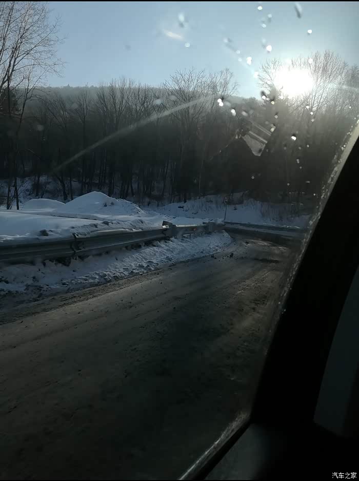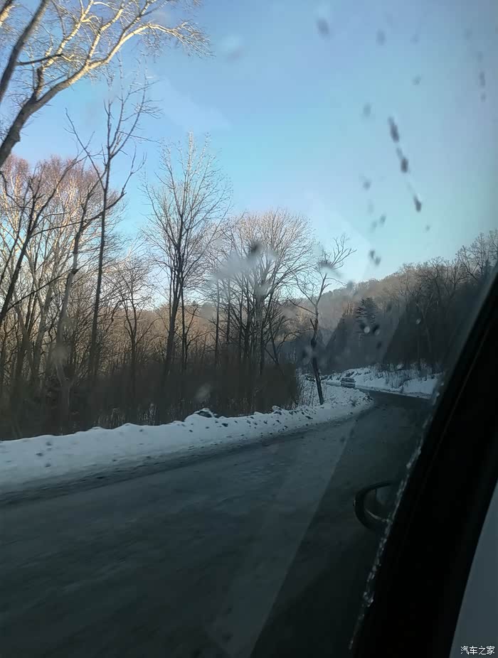 但是过了亚布力滑雪圣地(国家级滑雪场,专业赛道,坡度较斗)进入青云县后,亚雪公路全是盘山路,局部路段由于气温和风的原因,会有冰和雪,不敢快开,不会肯定会甩尾,所以速度很慢,57公里开了将近两个小时,路上还会有林场为了防滑撒的炉渣,但是会有板结的大块,我们由于没注意,被一个大块炉渣卡到了钢护板下面,来来回回前进倒车,弄了10多分钟才出来。大家如果自驾一定要注意安全。