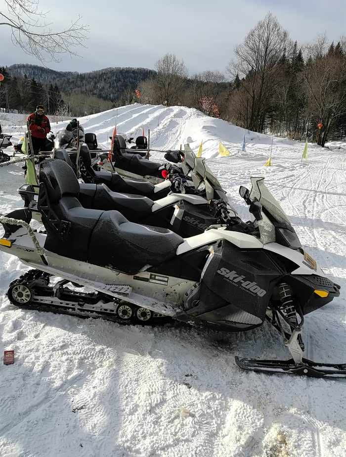 这个景区才是林场官方景点,剩下所有景点基本上都是村里或者个人开发的,如果抱团走,导游一定会带你去的,因为那是自费景点,可看可不看,我们这次自费去做的雪地摩托,这个主要是想感受一下雪地摩托上下山的快感,这摩托比较贵,150一个人,不是一台车,因为这摩托本身就是加拿大产的,10多万一辆,而且是烧油的。速度比较快,在坡度大的时候会离地,真的有种飞翔的感觉。