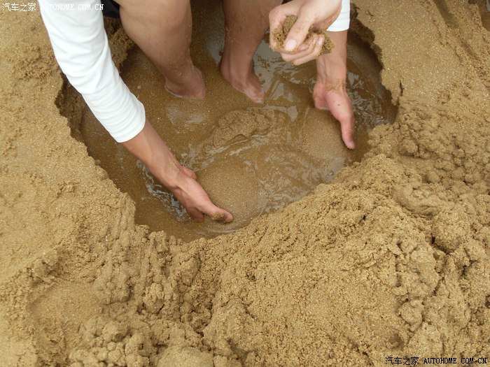 中午到达日照住宿地点——吴家台鹏程渔家,简单的吃点饭之后,直接奔向海边,还没看到大海,已经听到了大海的呼啸,本来没有报太大的希望,结果一看,沙滩非常不错,很平坦,沙子很细腻,赤着脚踩在脚下很舒服。而且我们惊讶的发现,沙滩上有好多小螃蟹跑来跑去,从一个洞洞钻到另一个洞洞,还在洞口攒了很多小沙球,非常好玩。