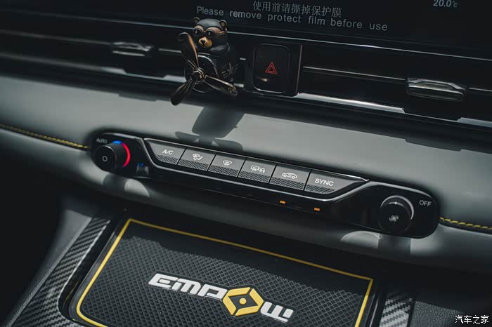 整个中控设计,我最喜欢的就是这块实体按键的区域,从质感和实用性双结合来说,这设计我是非常推荐的。特别在语音助手和其他的夹持下,把空调按键做成实体才是唯一的出路。