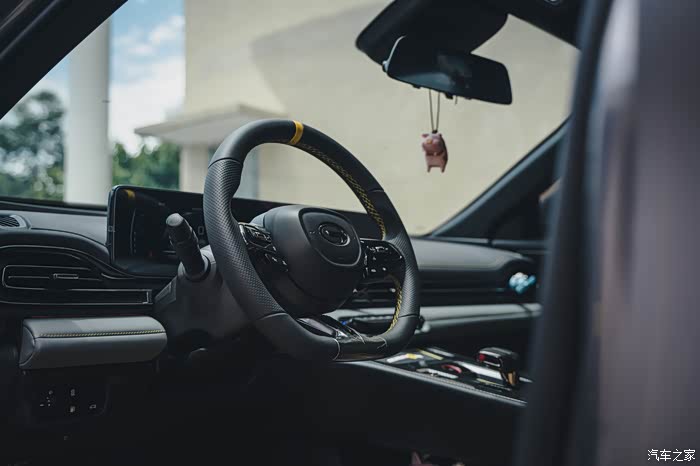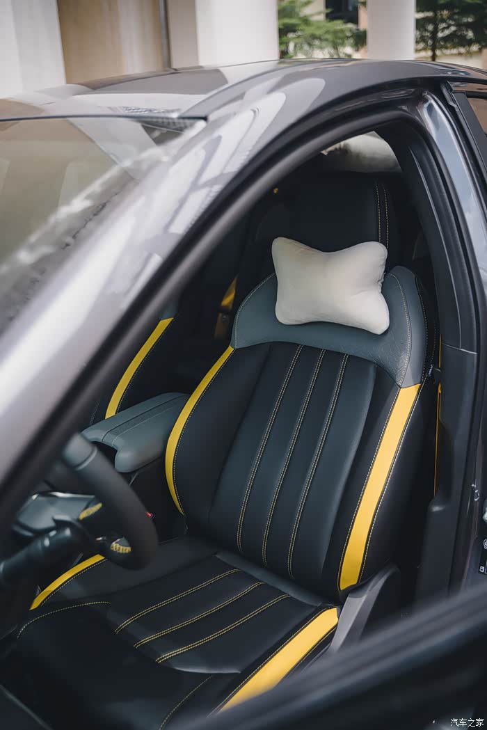 至于座椅,运动感也很强,黄黑拼接的颜色搭配上黄色安全带,比红黑内饰更有运动潮流之感。座椅的体验感倾向于家用方向,支撑性和舒适度适中,不会有特别硬和挤压感,适合日常使用多。