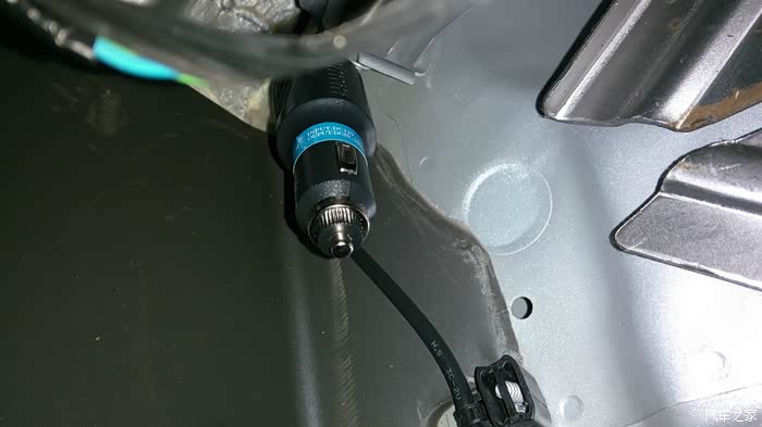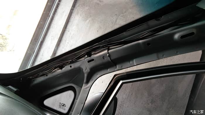 然后,比好长度,把线捋顺,捆扎好。尤其是手套箱后边的,一定要绑好,防止磨断。我上边的线直接塞进了天棚和前风挡的缝隙里了,逆光,没拍照。如果没有后摄像头的话,就大功告成了!我的是双摄像头的,还得继续!