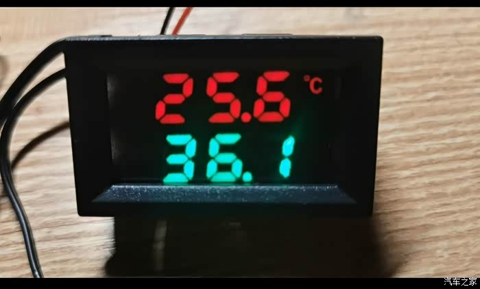 某宝购买的双测温+电压显示表(内嵌式)不要质疑温度表准不准,绿色的36.1是我腋下测试温度、红色是室内温度(家里开着空调天津这边好热的)
