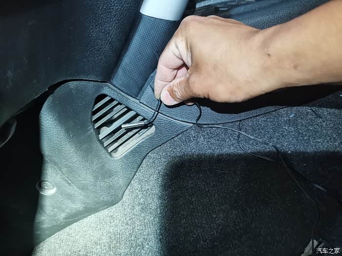 这就是下出风口位置一般冬天都几乎吹脚下,直接把探头塞进去就行了