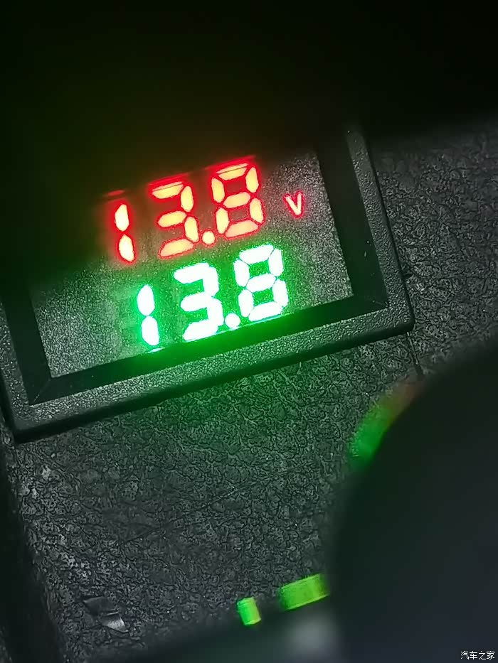 这是实时电压显示(每隔四秒左右自动循环实时温度和电压),着车怠速和行驶情况下13.5到14.8v之间说明发电机和稳压器工作正常。灭车情况下11.5v可以勉强启动车辆,正常情况下电瓶电压在12.5v左右