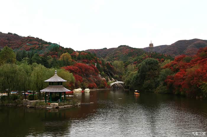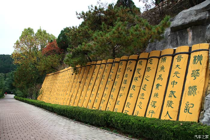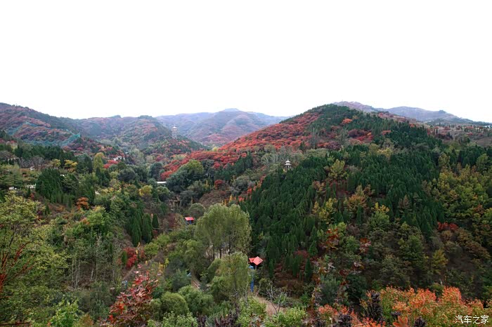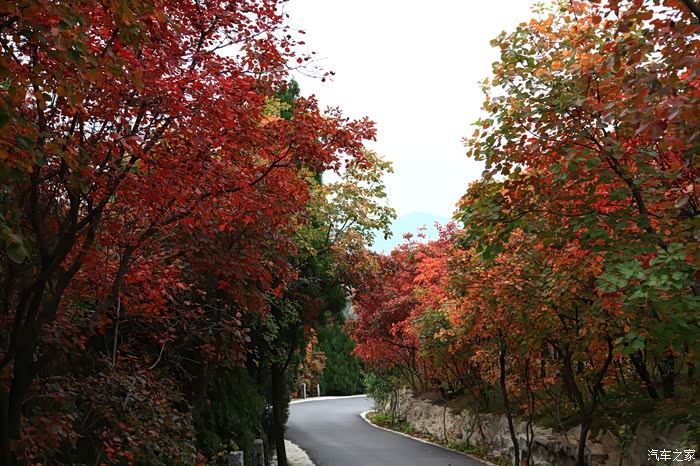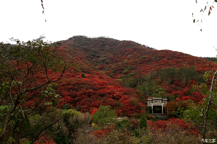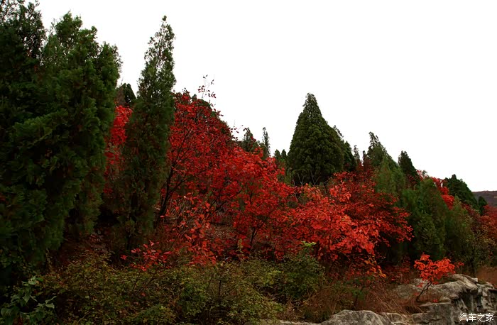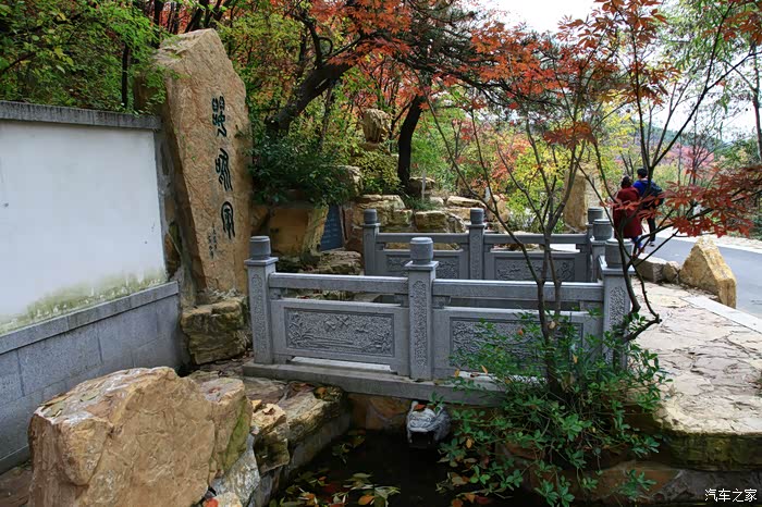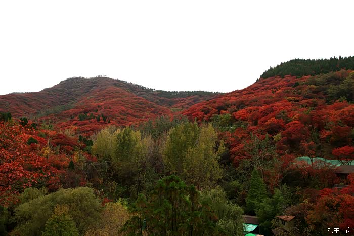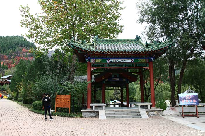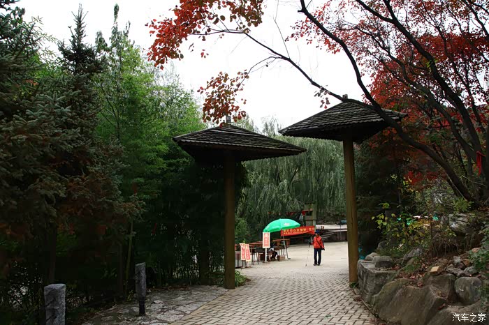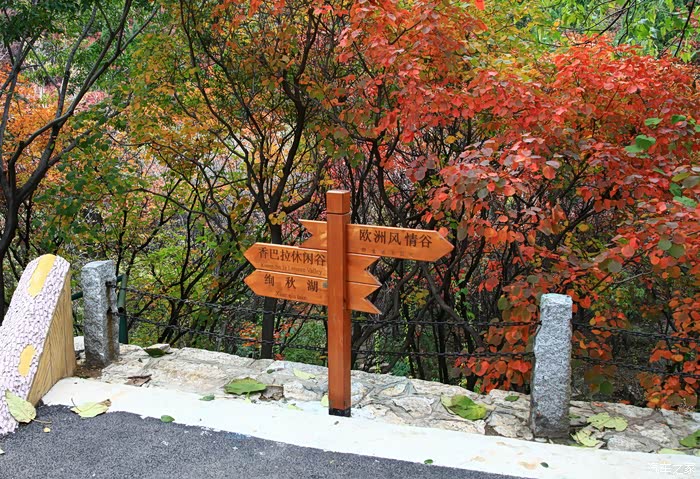 红叶谷位于济南市锦绣川乡南部山区,国家4A景区,景区植被覆盖率较高,是一处"天然氧吧"。红叶谷最美是秋天。金秋十月,登高送目,看万山红遍,层林尽染。我来济南三十多年了,也来游过几次红叶谷,但都没能赶上秋天的红叶,今年入秋后,整个十月,济南天天不是下雨就是雾霾,今天总算不下雨了,尽管能见度还不是很高,还是赶忙开着车和LD来到了红叶谷。前年春天来红叶谷看郁金香时,门票还是60元,我和LD有济南游园通票,打6折,每人36元,可这次说是10-11月门票为100元,济南游园通票70元,我用老年票门票50元--这大概是济南最贵的景区票了吧。