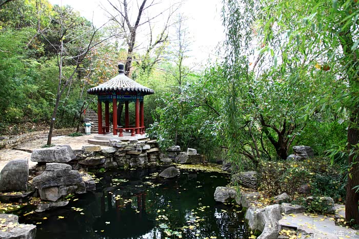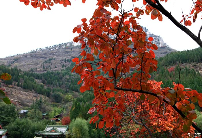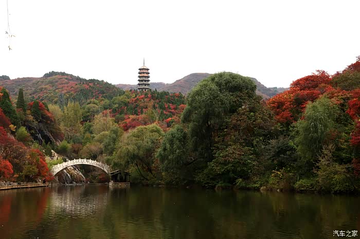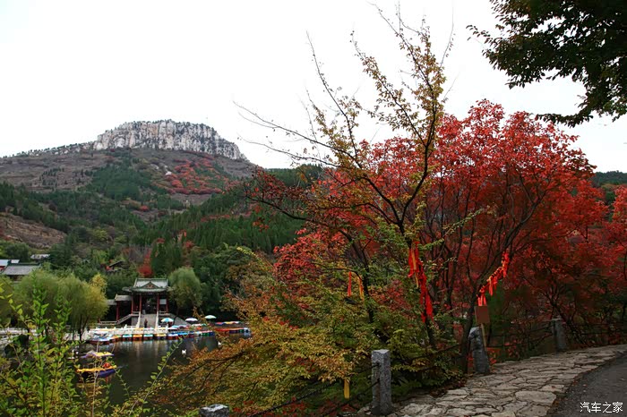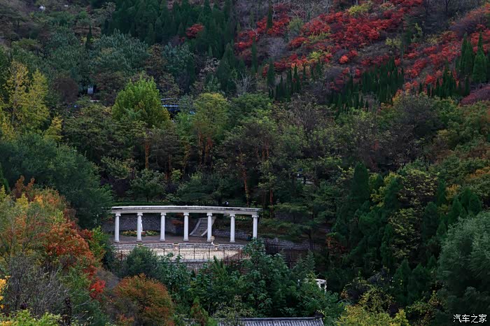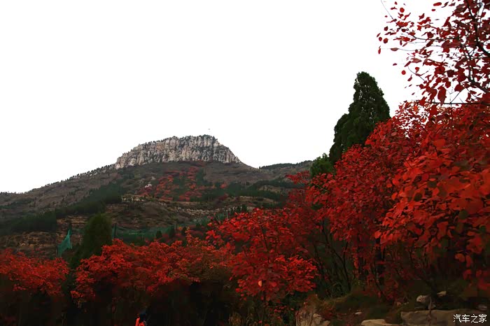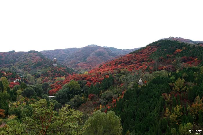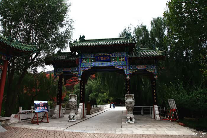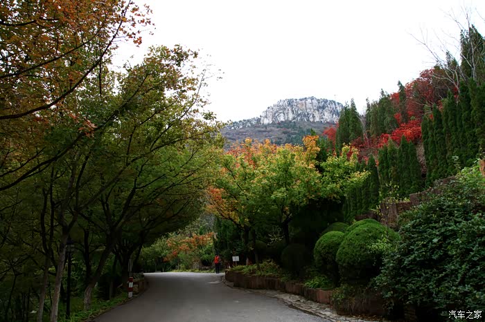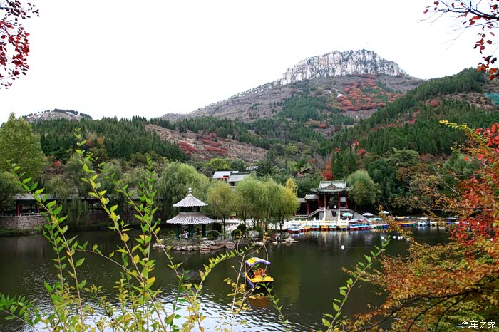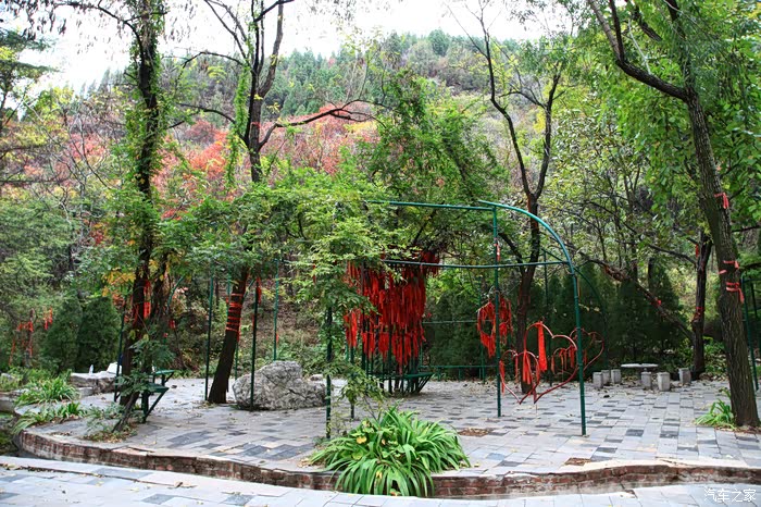 红叶谷位于济南市锦绣川乡南部山区,国家4A景区,景区植被覆盖率较高,是一处"天然氧吧"。红叶谷最美是秋天。金秋十月,登高送目,看万山红遍,层林尽染。我来济南三十多年了,也来游过几次红叶谷,但都没能赶上秋天的红叶,今年入秋后,整个十月,济南天天不是下雨就是雾霾,今天总算不下雨了,尽管能见度还不是很高,还是赶忙开着车和LD来到了红叶谷。前年春天来红叶谷看郁金香时,门票还是60元,我和LD有济南游园通票,打6折,每人36元,可这次说是10-11月门票为100元,济南游园通票70元,我用老年票门票50元--这大概是济南最贵的景区票了吧。