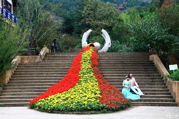 红叶谷有很多以爱情为主题的景点--百年修得同船渡